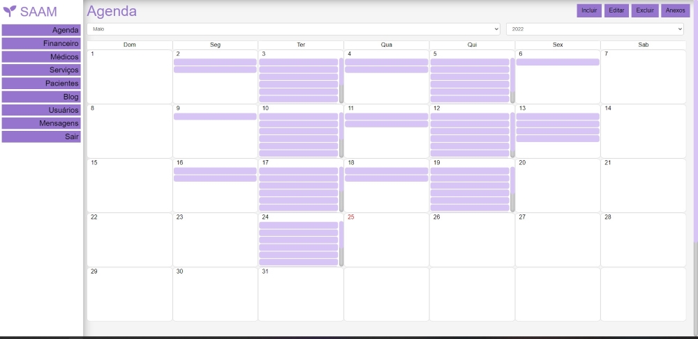 O S.A.A.M é um Sistema de Agenda e Atendimentos Médicos, desenvolvido para ser uma ferramenta simples e direta, ele conta com agenda e controle de médicos e pacientes.Sua principal função é garantir um ambiente onde o médico possa ver o histórico dos pacientes com dados pessoais, histórico de consultas, histórico de melhorias e evolução.Assim como o PERSONA o S.A.A.M conta com um site, com landing page, blog e também uma área de contato que além de gravar no próprio sistema o contato do paciente envia um e-mail para você.O S.A.A.M. apesar de ser desenvolvido com médicos como publico alvo pode ser adaptado a outros setores de atendimento além de poder ser personalizado de acordo com a sua vontade.